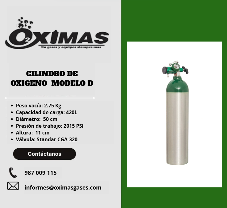 Cilindro ideal para la movilidad de pacientes que requieran de oxigenoterapia y para uso domiciliario